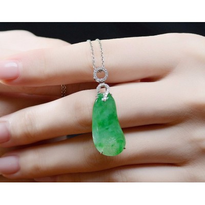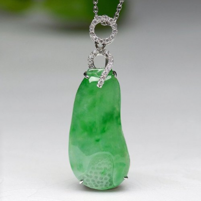 dongfangfeicui/东方翡翠 【孤品】18K金镶钻天然A货水润冰金丝种阳绿福瓜吊坠