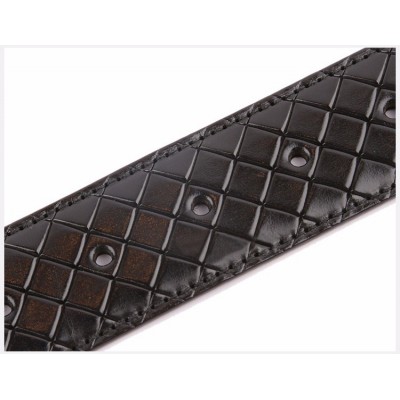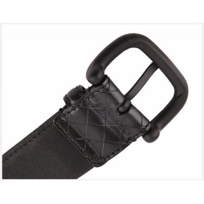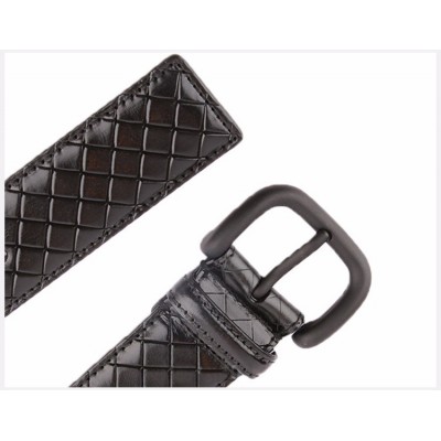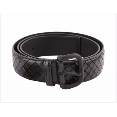 【情人节礼物】Bottega Veneta/葆蝶家 BV 男士黑色压纹商务休闲碳黑方形扣头编织皮带腰带 261363-VQ241-1000